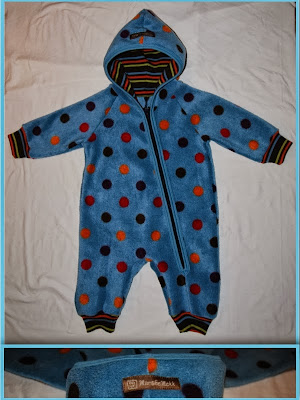 Jeg hadde igjen litt av denne herlige polarfleecen med prikker, har sydd en del dresser av det tidligere, se her.